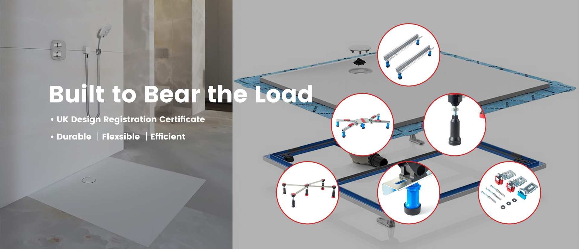 W przeciwieństwie do tradycyjnych wsporników pełnopodłogowych, system ram do brodzików zapewnia mocne, a jednocześnie regulowane podparcie brodzika, zapewniając łatwy montaż, lepszy drenaż i długoterminową stabilność.